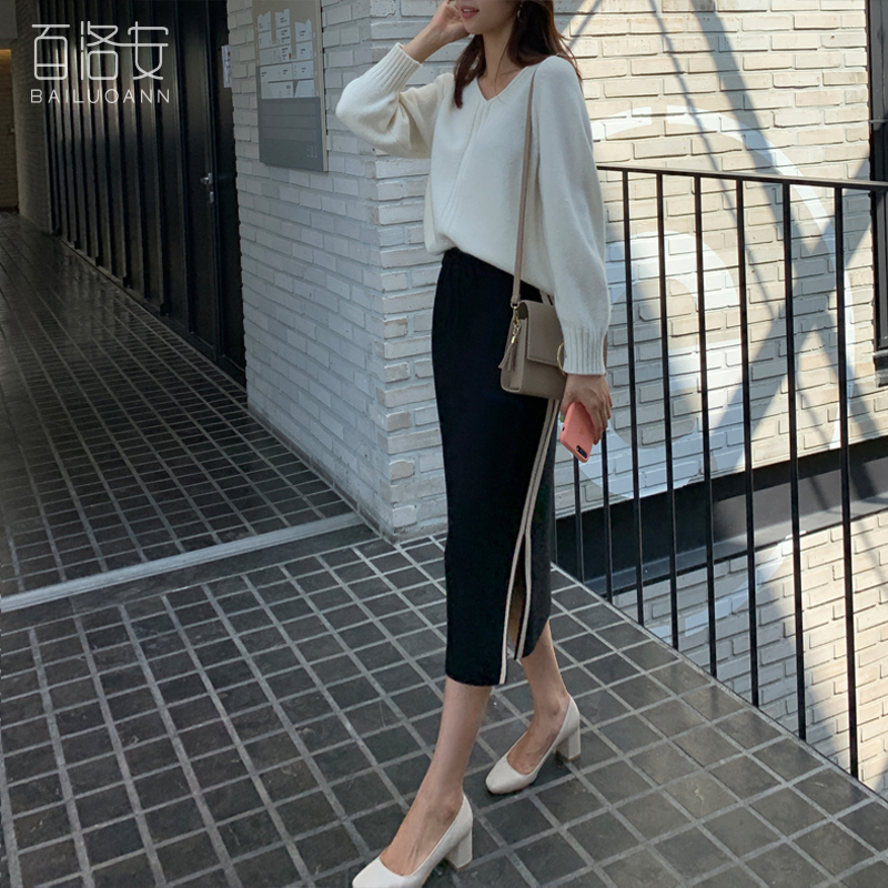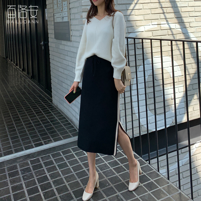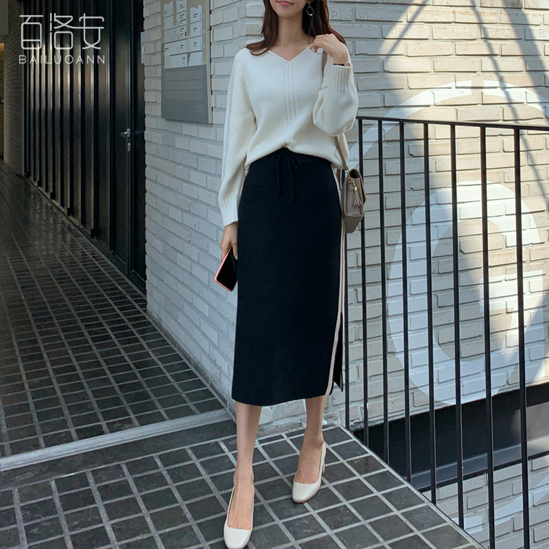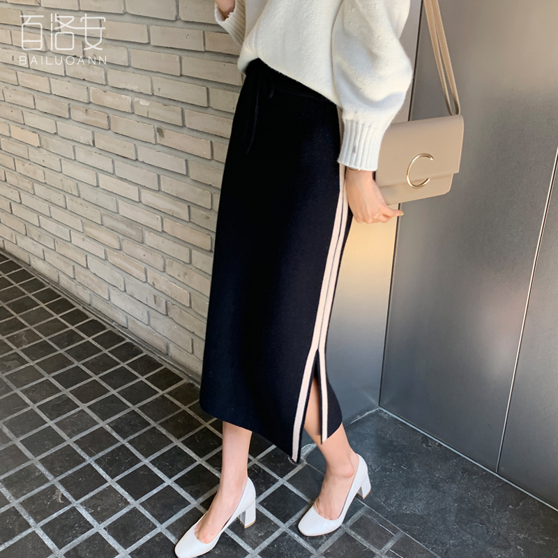 100 Loane 100 Lap Knit Half Body Dress One Step Skirt Autumn Winter New Thickened Warm Medium Long Version Bangs on Hip Skirt