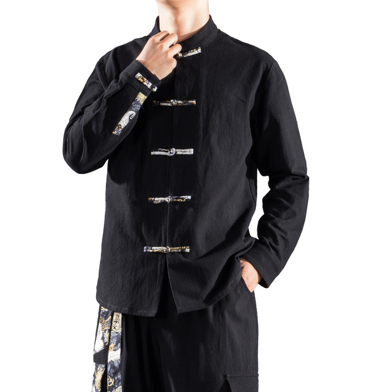 Old Print Modified Tang Dress Male Youth National Tide Shirt Jacket Long Sleeve Handmade Disc Buckle Retro Blouse China Wind Menswear
