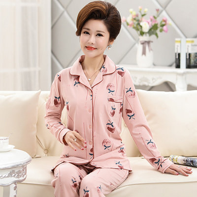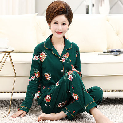 Autumn and winter cotton long-sleeved pajamas mother-in-law, the elderly and the elderly large size home clothes cotton plus fat increase loose 200 kg l