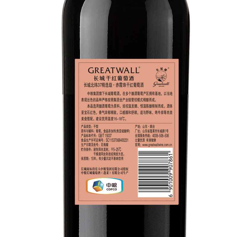 Medium Grain Great Wall North Latitude 37 Selected Grade Red Xia Pearl Dry Red Wine Red Wine Red Wine 750 * 12 Delivered Luxury Wine