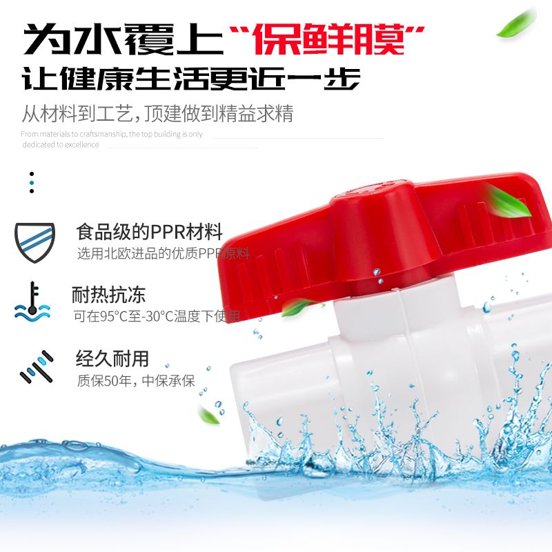 Top construction internal silk full plastic steel core ball valve thickened 20 25 32 40PPR water pipe fittings tap water pipe valve