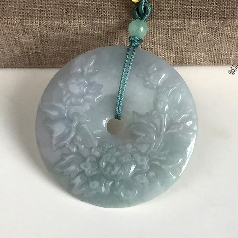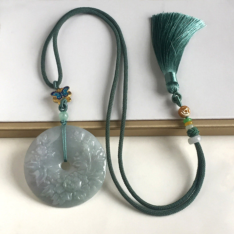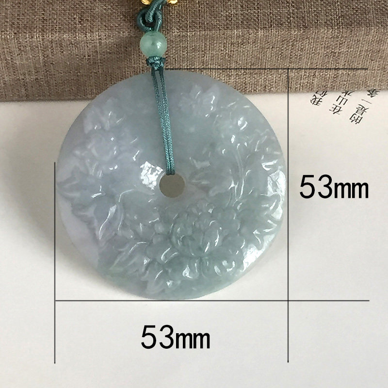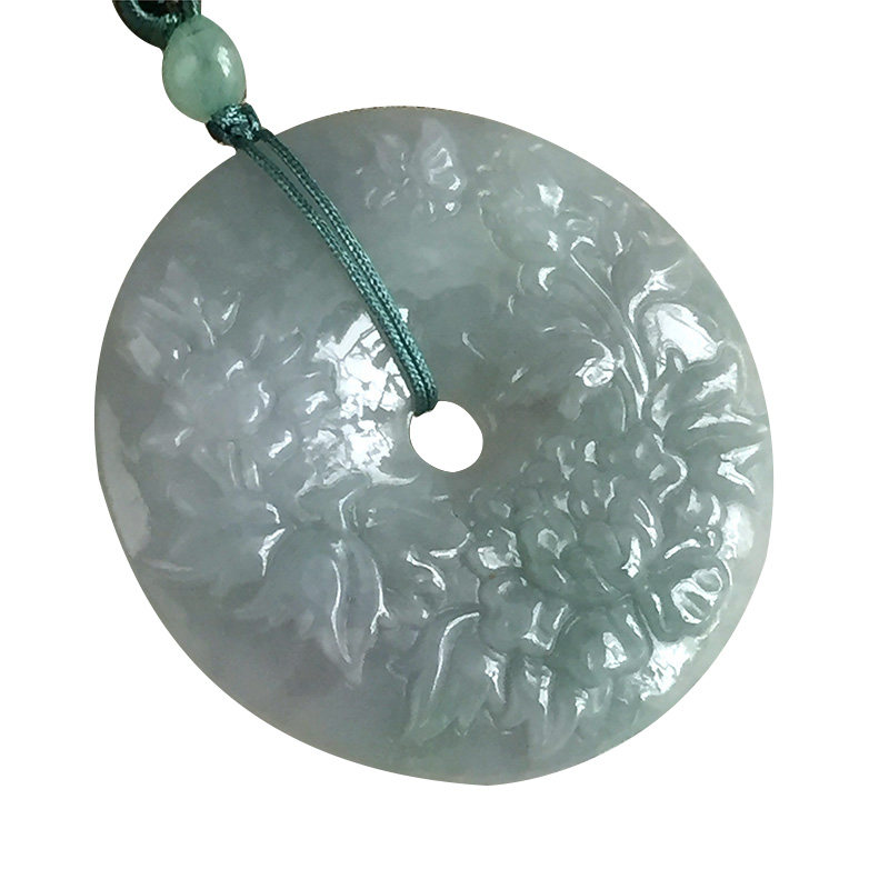 Myanmar natural jade A goods flower rich and precious peace buckle pendant Female goods A goods flower rich and precious peace buckle sweater chain