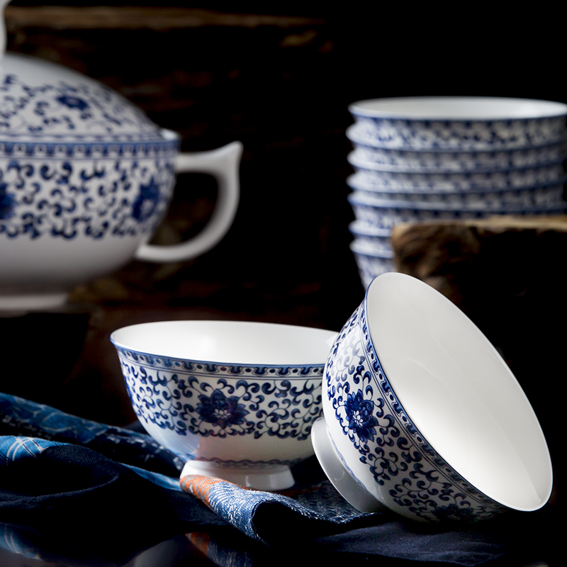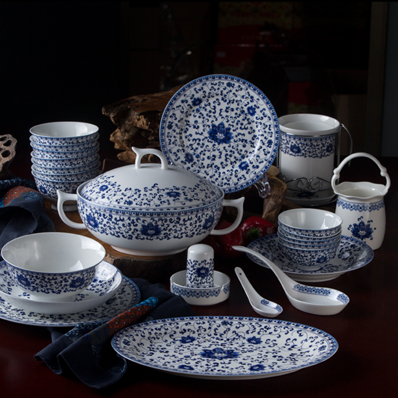 Rsemnia Jingdezhen 60 Skull Porcelain Cutlery Cutlery Sets Bowls Disc Dish of Painted Green Flower Cutlery Chinese Style Gift