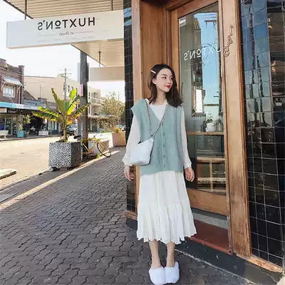 Korean version of loose retro waistcoat shoulder wool vest college style knitted vest vest jacket women autumn and winter