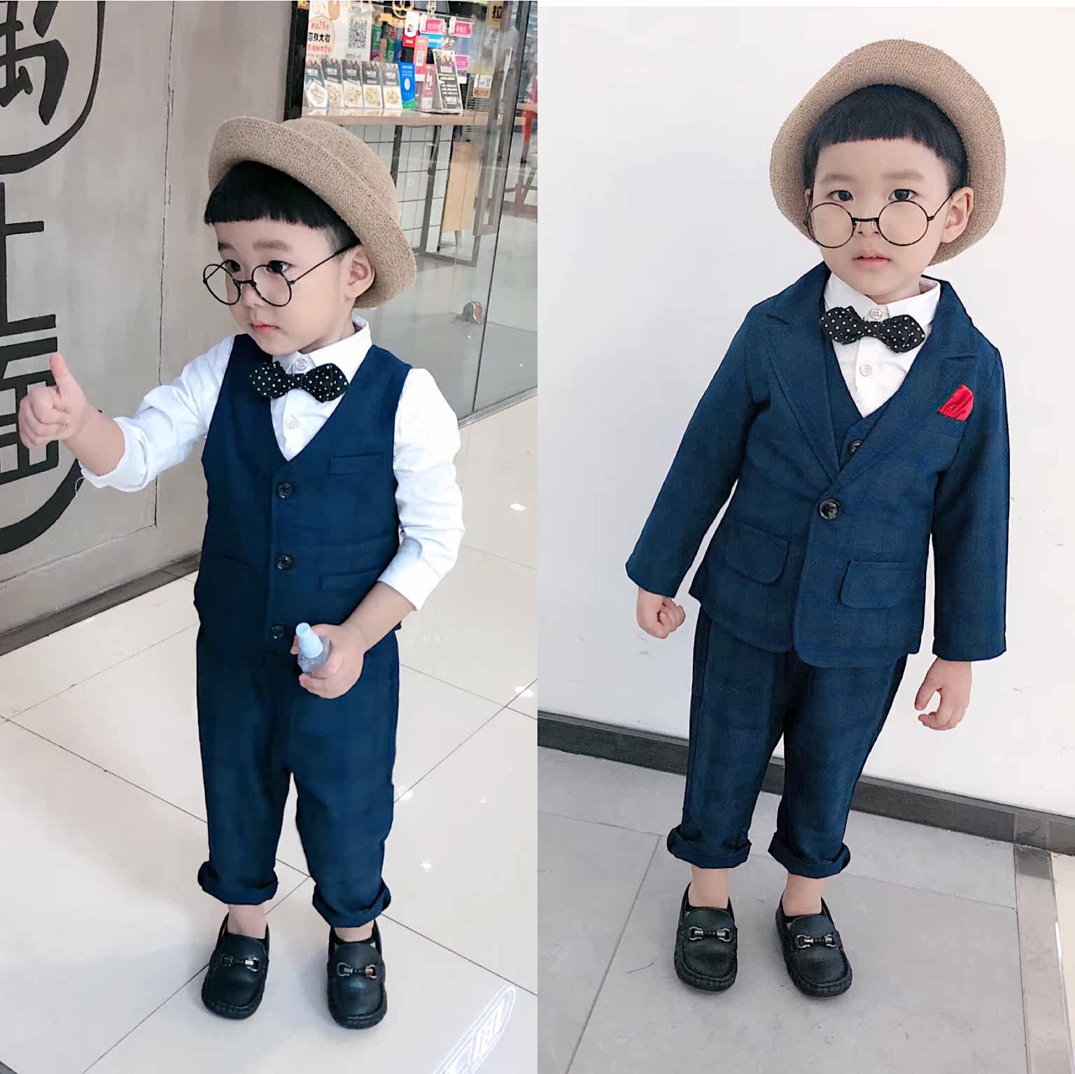 Children's suit suit boy Yinglun Wind flower boy gown The baby catch the spring and autumn waistcoat A suit of four sets