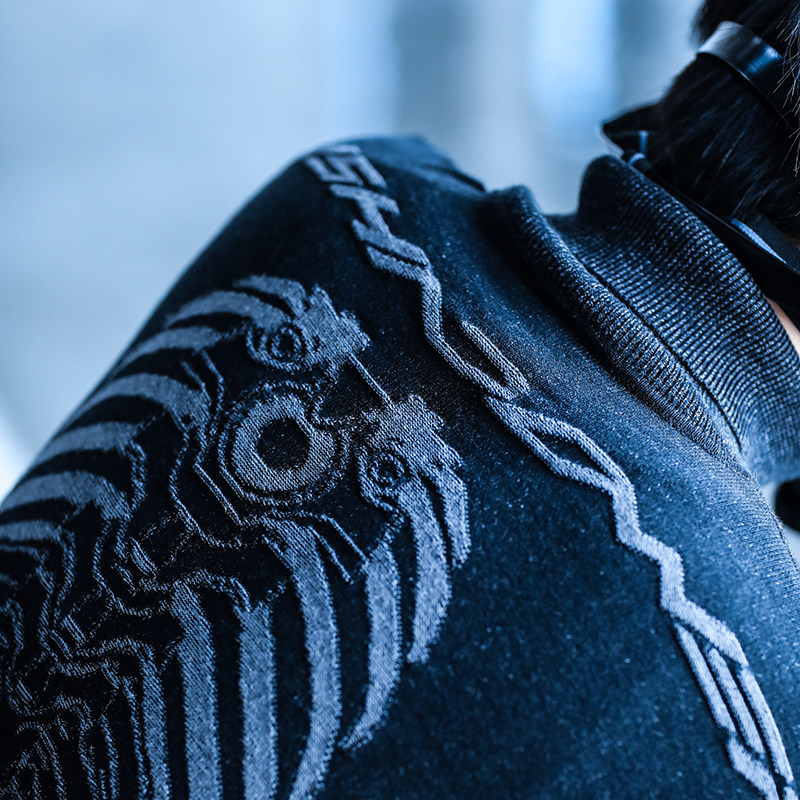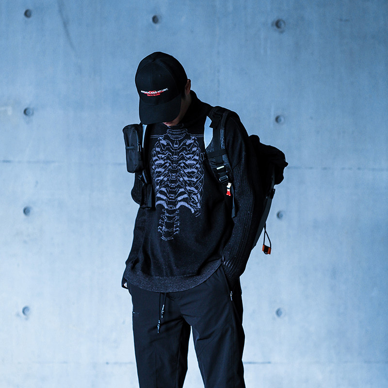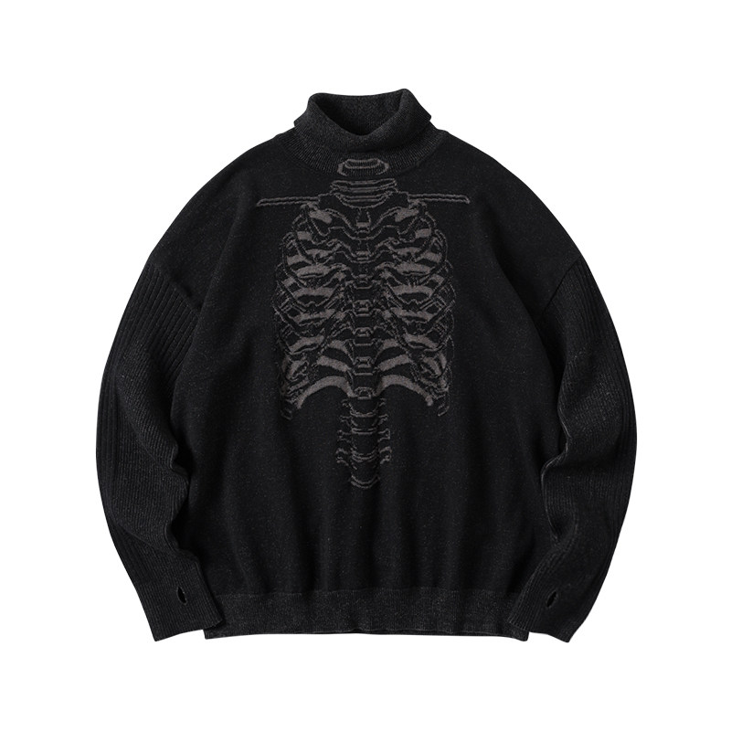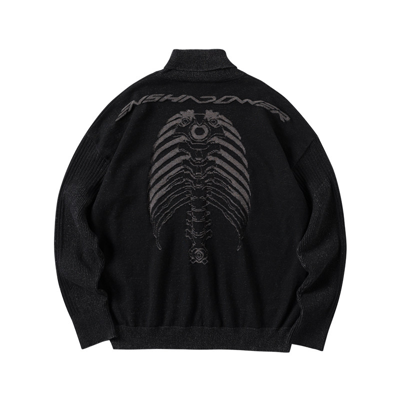 ENSHADOWER CONCEALER DARK PATTERN MECHANICAL CREST COLUMN RIB bone printed SWEATER BLACK TURTLENECK Autumn and winter sweater