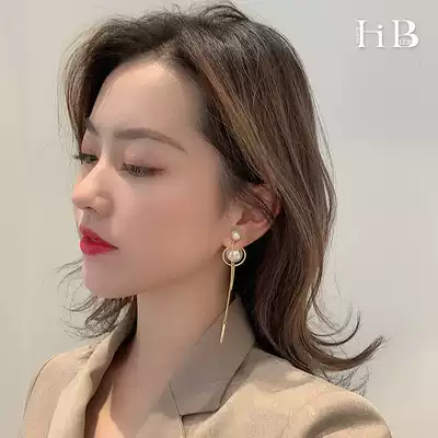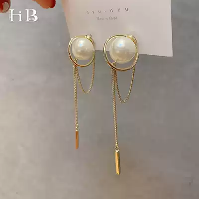 Korean light luxury senior sense Pearl tassel earrings 925 silver pin earrings long version fashion versatile personality earrings female