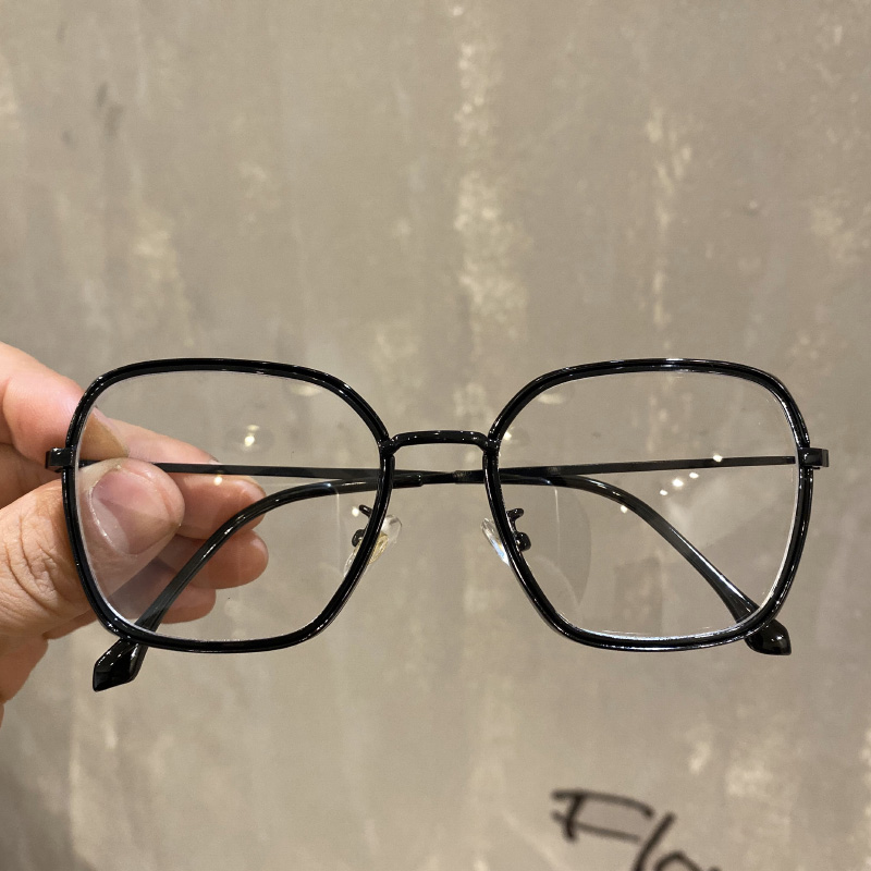ins glasses female retro mesh red round face black transparent flat mirror personality box mesh red vegan face myopia mirror frame