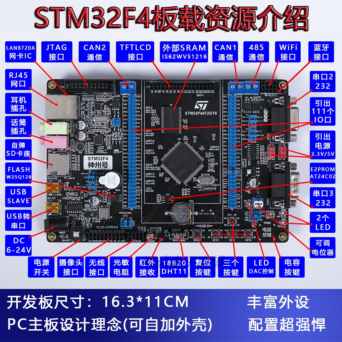 STM32F407 development board MCU industrial control board network port double can bluetooth wifi485 M4 strong wildfire STM