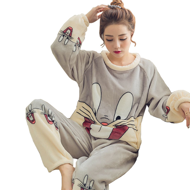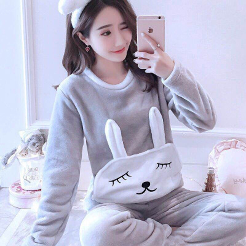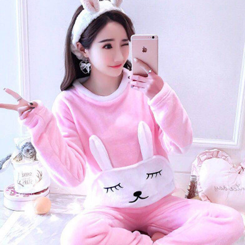 Pajamas Woman Coral Velvet Fall Winter Thickness Lovely Sleeve Warm and Han Version Winter Flnnel Home Clothes