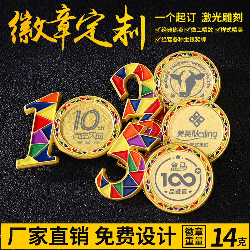 Metal Badge 10 Digital Chest Badge Enterprise 23 50 Anniversary Celebration West Suit Brooch Customize