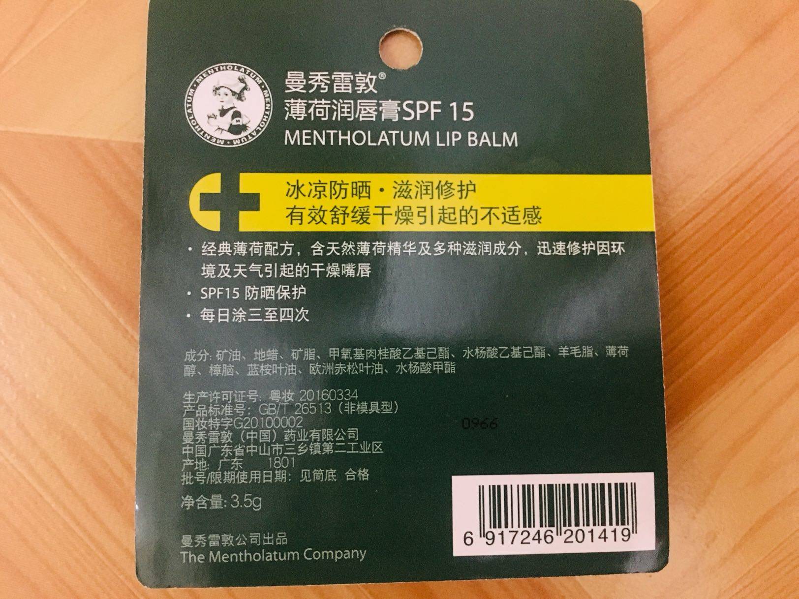 Mint lip balm SPF15