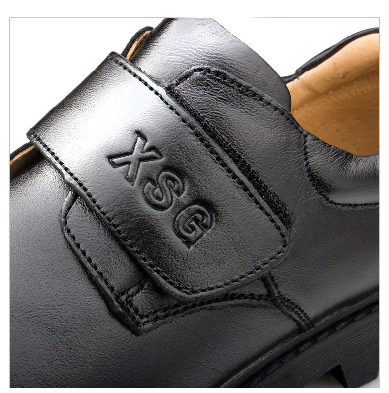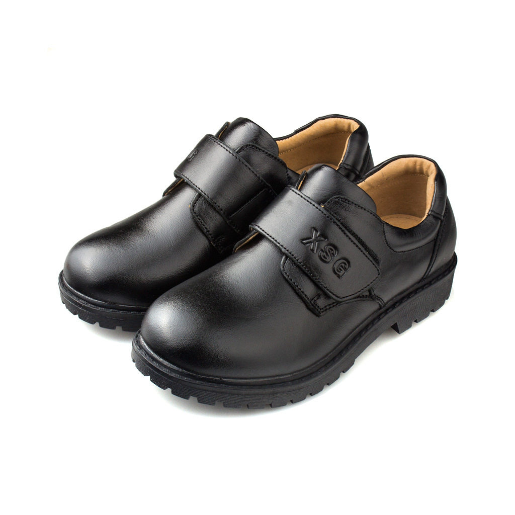Shenzhen School Designated School Shoes Student Brother Boy Shoes Shoes Shoes Magic for Black Leather Liturgy Shoes