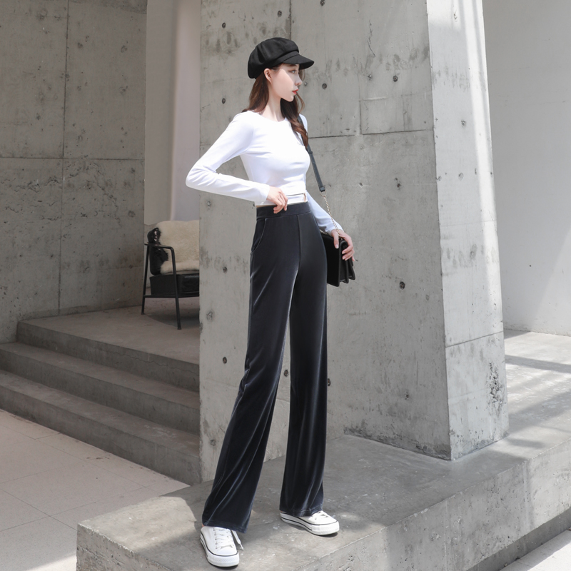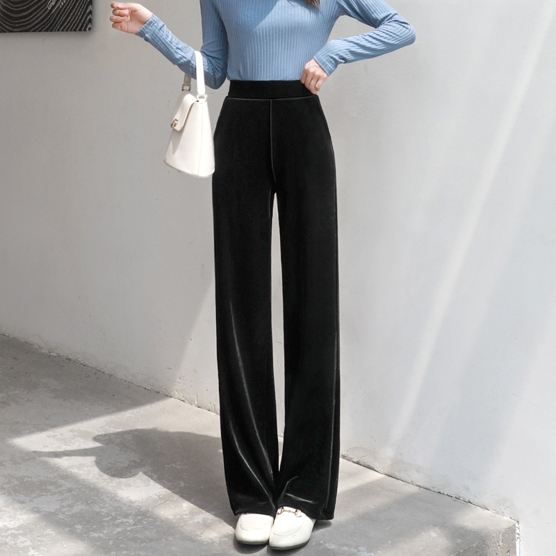 Gold velvet wide-leg pants women's spring, autumn and winter 2022 new high-waisted straight-leg slim women's trousers dragging the floor and draping plus trousers