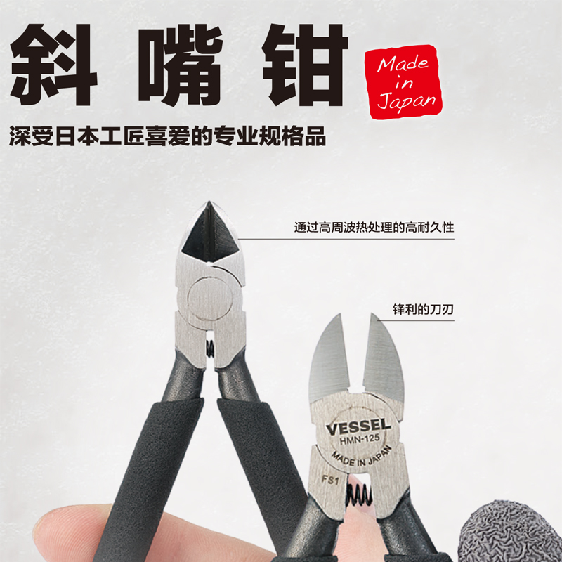 Japan VESSEL Wiesel Weiwei Old Tiger Pliers Electrician Import Skew tip Pliers Mouth Pliers Mouth pliers Pliers Duckbill Pliers