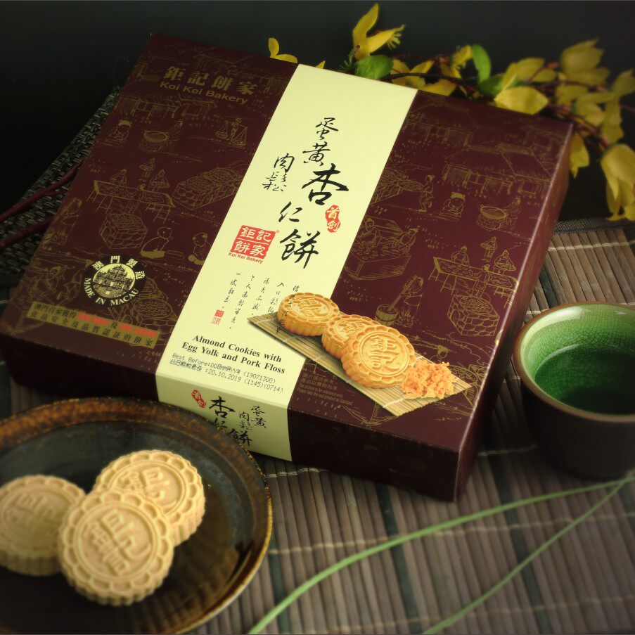 Macau Specialty Juji Bakery Hand Letters Floss Almond Cookies with Tea Snacks and Pastries Individually Packed Fragile Goods