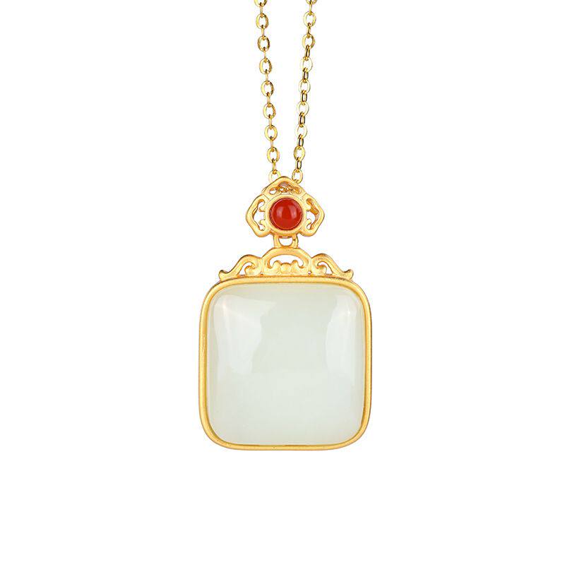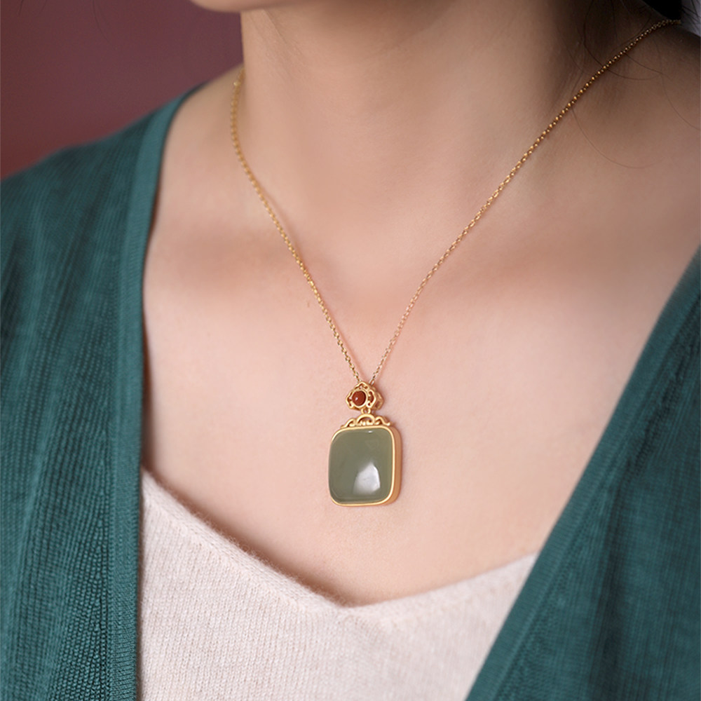 Safe and sound Xisu S925 sterling silver ancient gilt Hetian jade pendant necklace retro sweater chain female clavicle chain