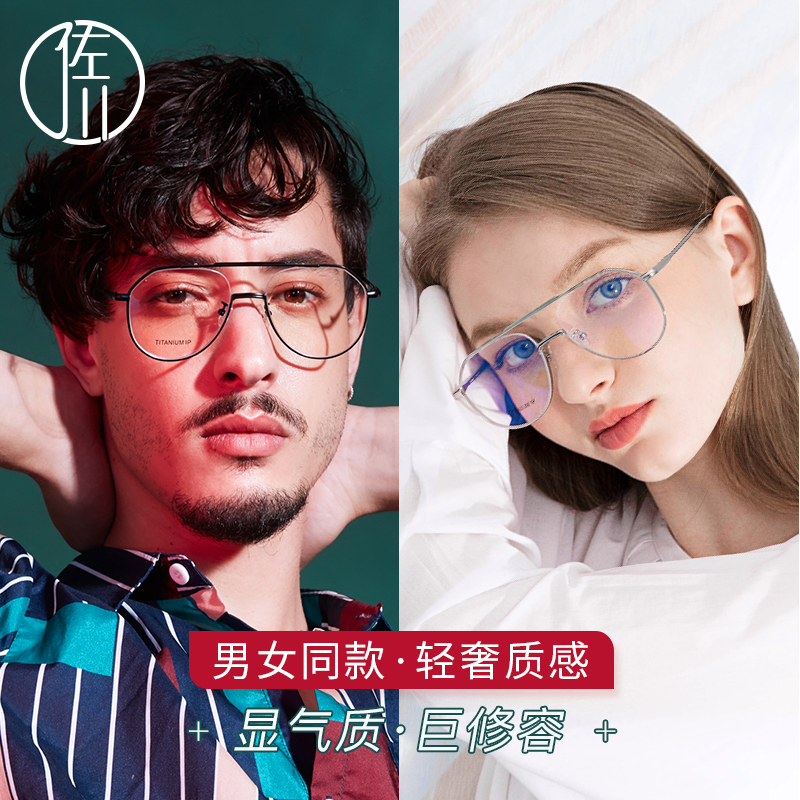 Sagawa Huang Jingyu with pure titanium eyeglass frame female can be equipped with lenses Pilot myopia glasses Male tide big face glasses
