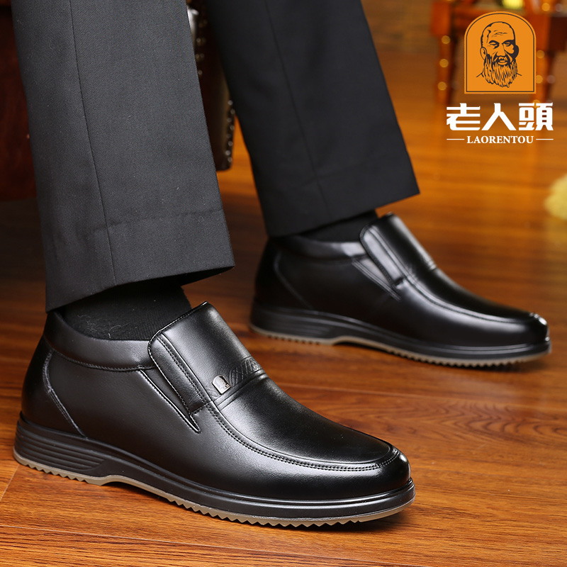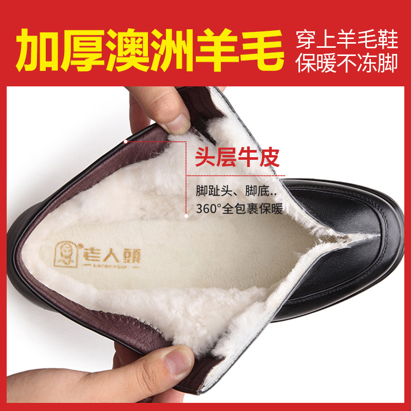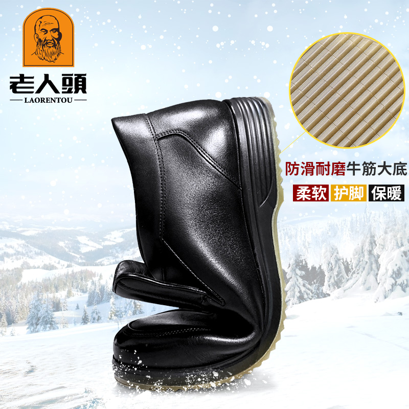 Old man's scalp shoes men's 2022 winter warm plus velvet leather casual high-barrel wool cotton shoes middle-aged and elderly dad shoes