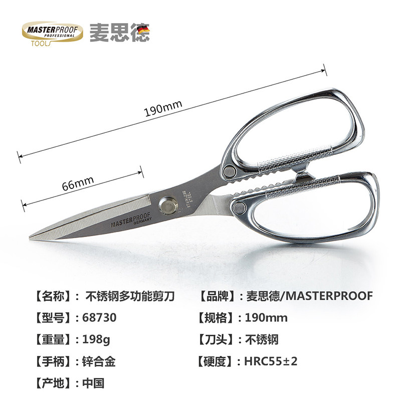 Maxd stainless steel multifunctional household scissors office handmade scissors cloth flower chicken duck rip kitchen scissors