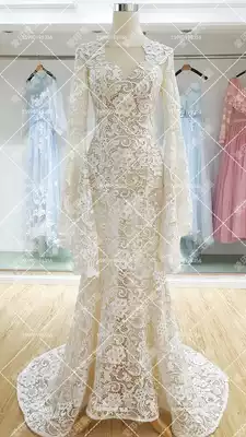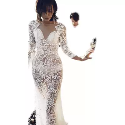New photo studio theme location travel wedding photography Couple photo seaside perspective photo lace fishtail dress