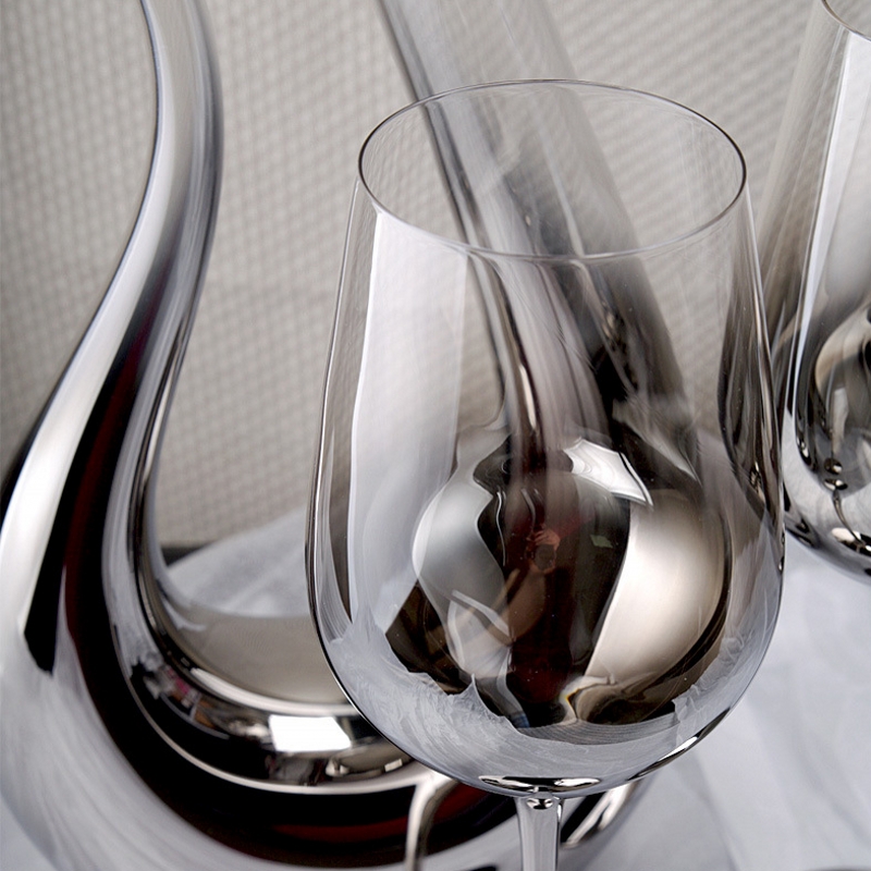 High-end Crystal Glass Plated Silver Gray Gradual American Red Wine Mug Metal Sensation High-footed Decanter Little Crowdler