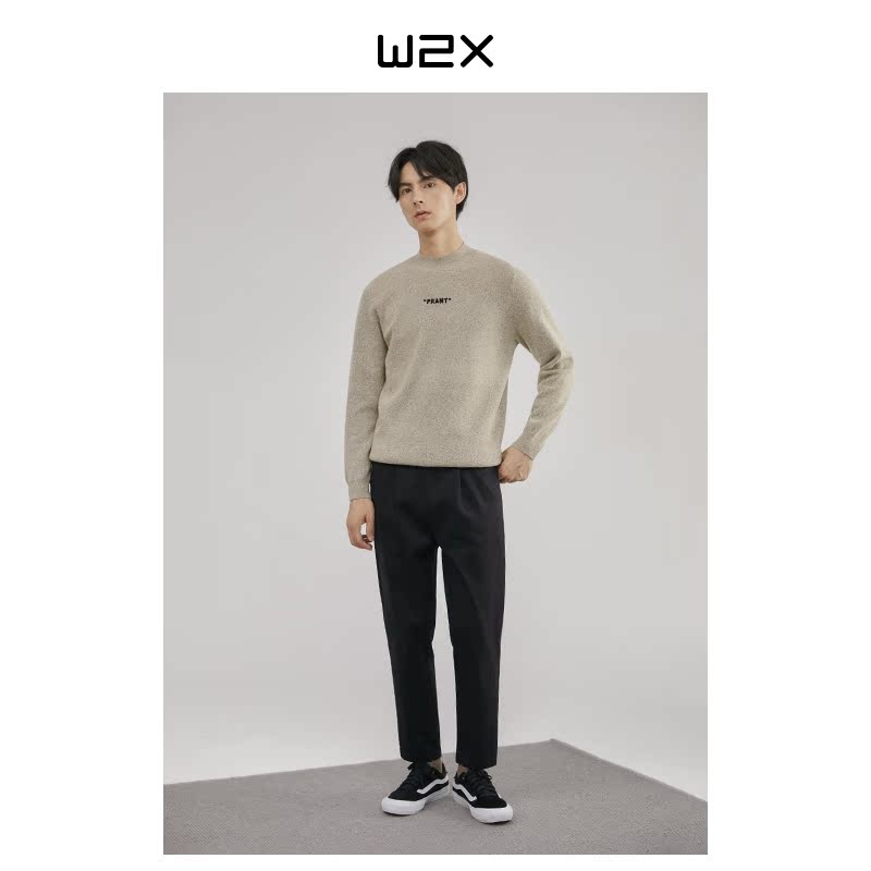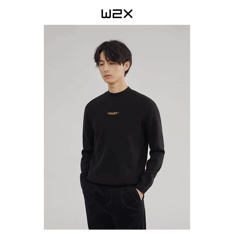 (Storage grid)middle collar contrast embroidery sweater men loose and handsome autumn new top thick men's sweater