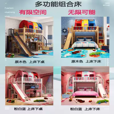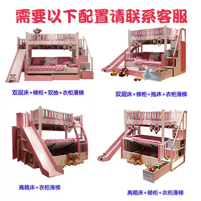 Full solid wood two-layer children's double bed Double bed High and low mother and child bed Bunk bed Girl princess castle mother and child bed