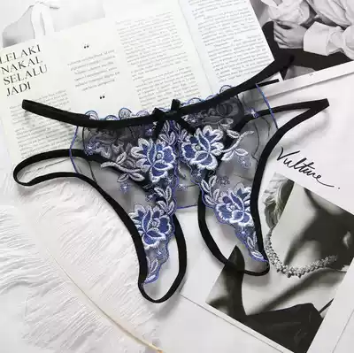 Open crotch embroidery temptation see-out T-panties women low waist sexy hip T pants