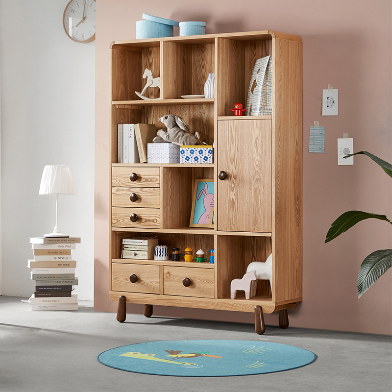 Solid wood bookcase children floor bookshelves modern minimalist living-room shelves Home Toy food containing cupboards