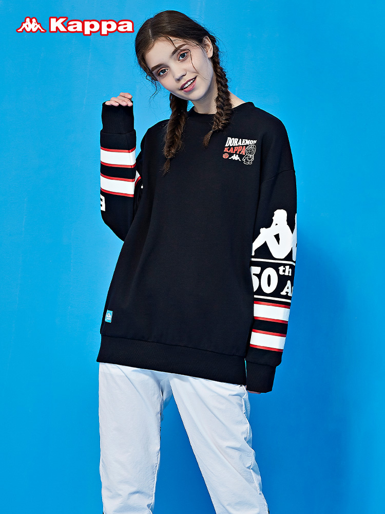 Kappa Kappa women's off-the-shoulder sports sweater casual bf round neck jacket knitted pullover cartoon long-sleeved top