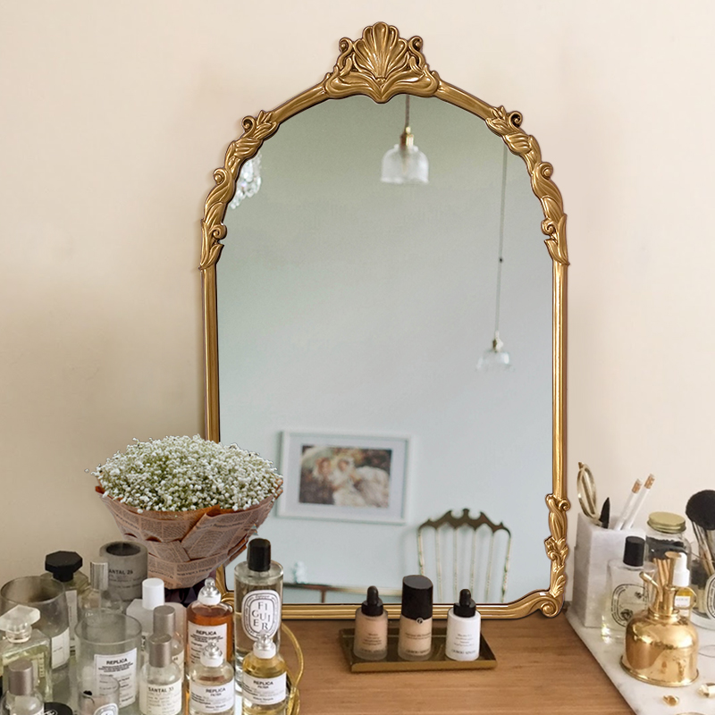 European carved vintage makeup mirror light luxury French decorative mirror background wall hanging desktop bathroom dresser mirror