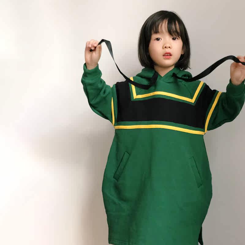 Pear Little Idle Girl 2020 Autumn Han version Fashion grabbing medium Long version loose CUHK Tong Lianhood Sports Shirt dress