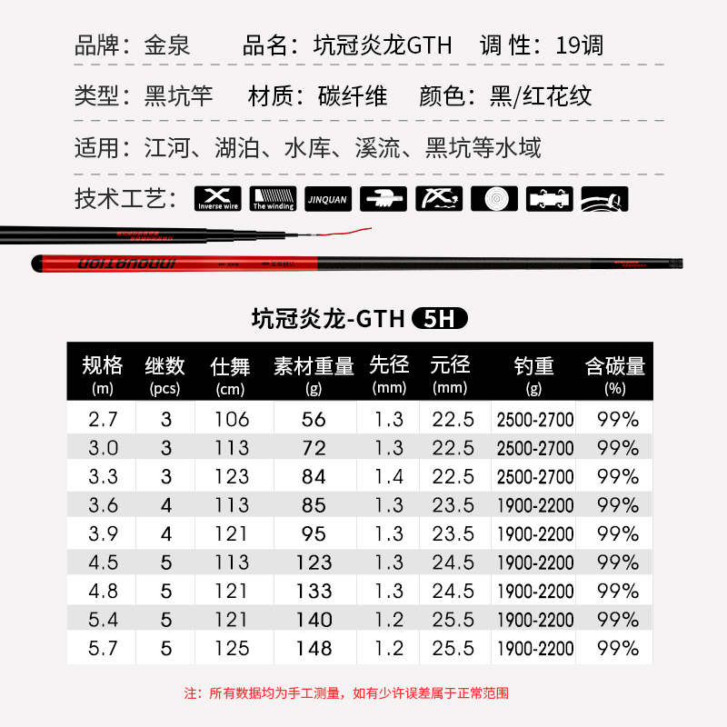 Golden Quanyan dragon GTH Black pit version 19 tune 5H6 5H fish rod hand rod ultra-light ultra-hard table fishing carp crucian fishing rod