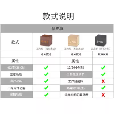Square-black red light-battery plug-in square-black white light-battery plug-in square-bamboo white light-battery plug-in square-brown white light-battery