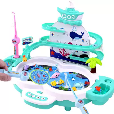 Children electric fishing toy pool Children Baby 2-3-4-5 years old boys and girls 1 educational hook fish magnetic set