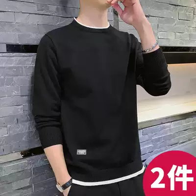 Men's sweater 2020 autumn and winter Korean fashion round neck base plus velvet thick sweater men's long sleeve sweater top