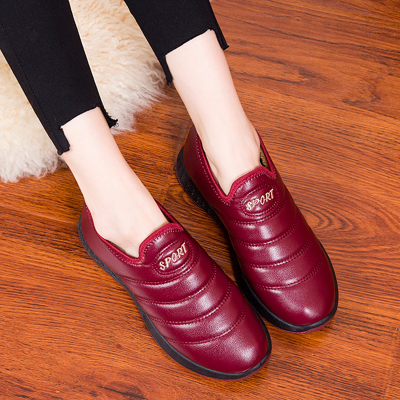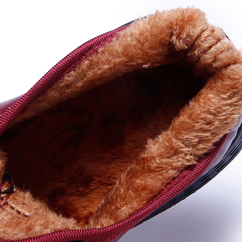 Old Beijing winter warm and waterproof leather women's cotton shoes plus velvet thickening middle-aged and elderly mother's shoes flat non-slip short boots