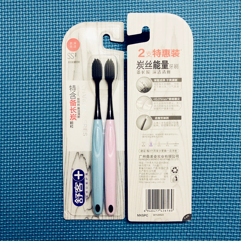 Shu Guest Shuk Charcoal Silk Energy Toothbrush Small Head Soft Gross Adult section Home Bamboo Charcoal Beauty Tooth White Family Clothing Suit