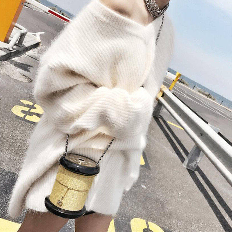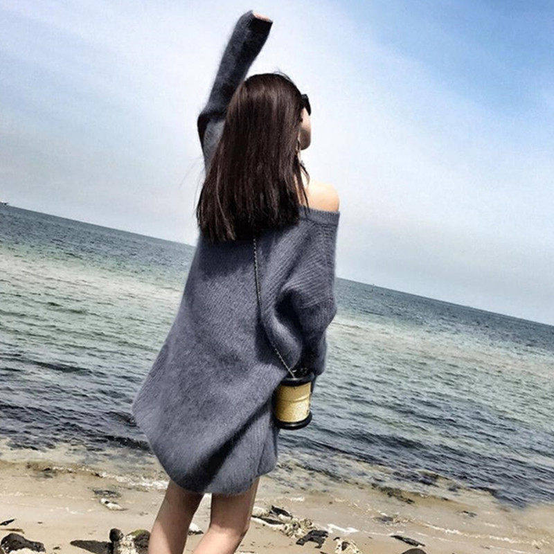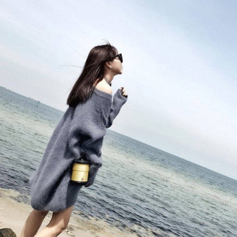 The long edition of the 2019 new autumn lazy knife sweater is loose to wear autumn and winter