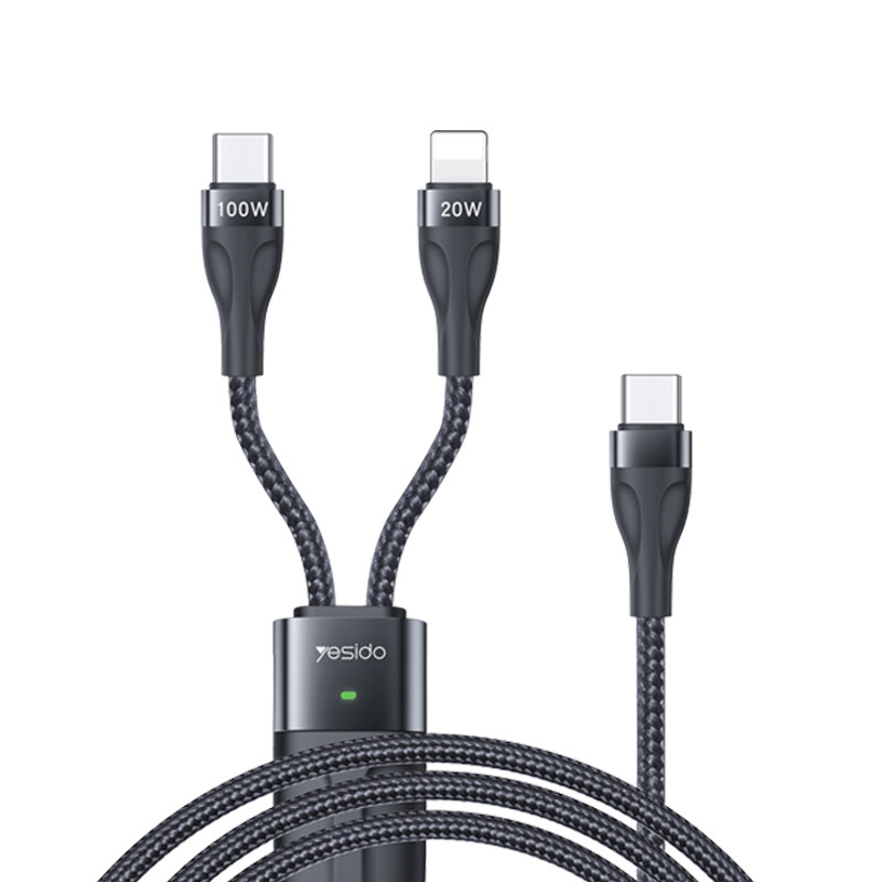 yesido one-drag two data line type-c fast charging 100w two-in-one charging wire for 1213pro Android iPhone Huawei Mate40 mobile phone 14