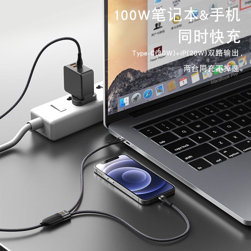 One drag two fast charging Type-C100W lighting20W(CA87) one drag two fast charging Type-C100W Type-C80