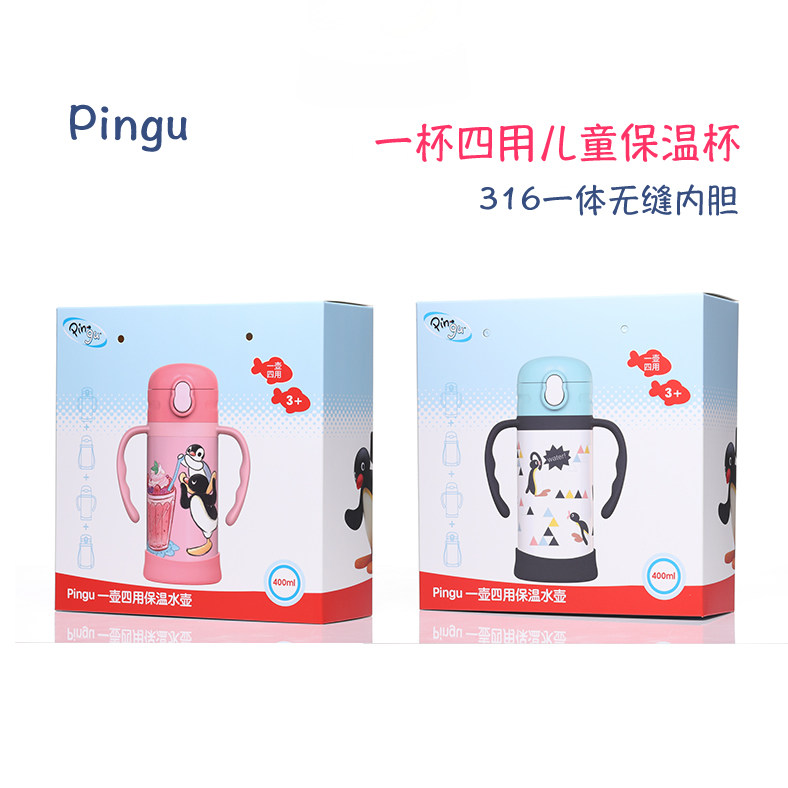 Pingu Penguin Family Children Insulated Straw Cup Straight Drinking Cup Handle Holding Baby Bag baby Kettle Stainless Steel