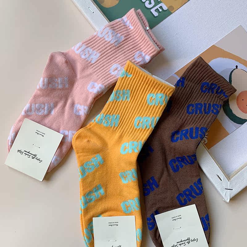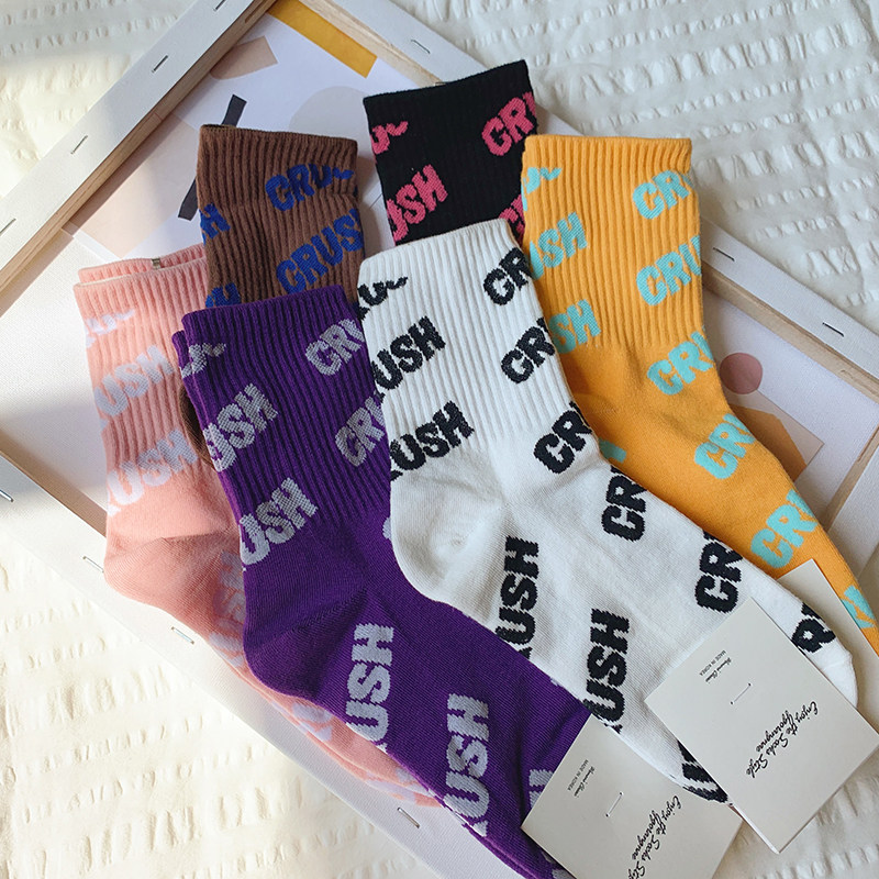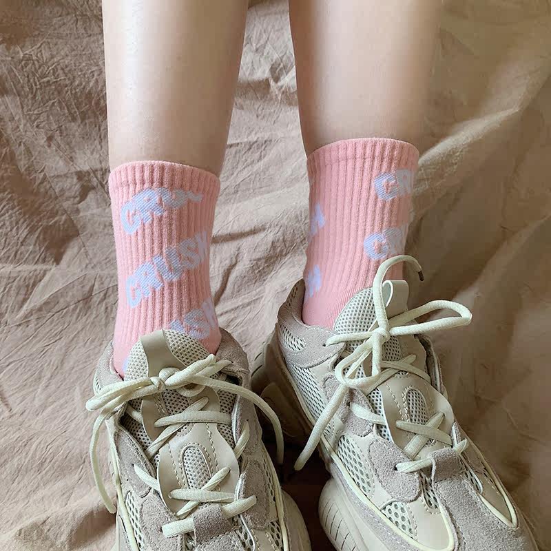 Socks Lady Pure Cotton Middle Cylinder Socks Sports Letters Ins Tide Korean version Skateboard Sox streets Europe and America High oak spring and summer