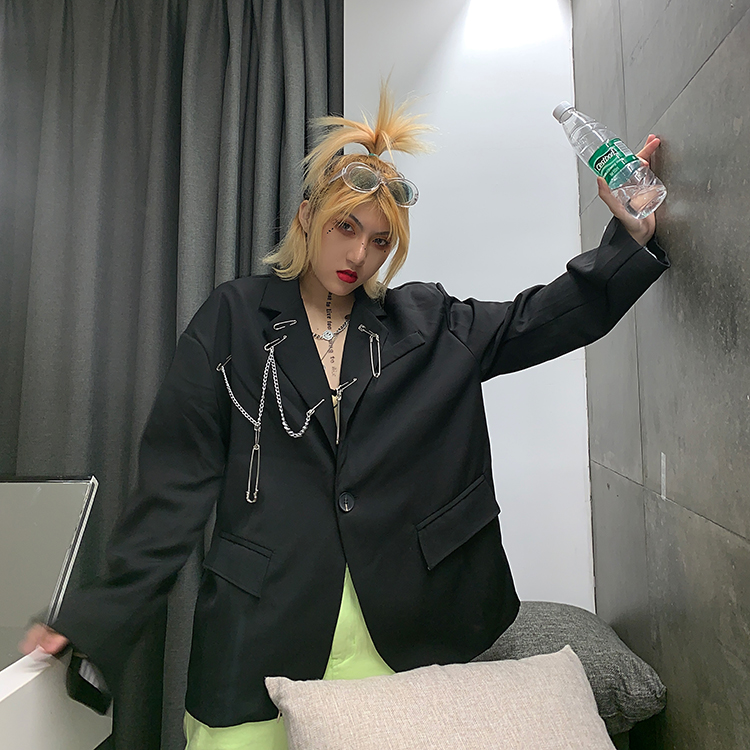 UN dark paper clip hanging ring suit jacket women's spring and autumn design niche Korean style loose long-sleeved top
