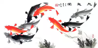Three-foot banner six-shun picture red fish three-foot banner six-shun picture ink fish three-foot vertical picture six-way red fish three-foot vertical picture six-way ink fish three-foot vertical picture nine-square picture red fish three-foot banner Kowloon picture red fish four-foot vertical width