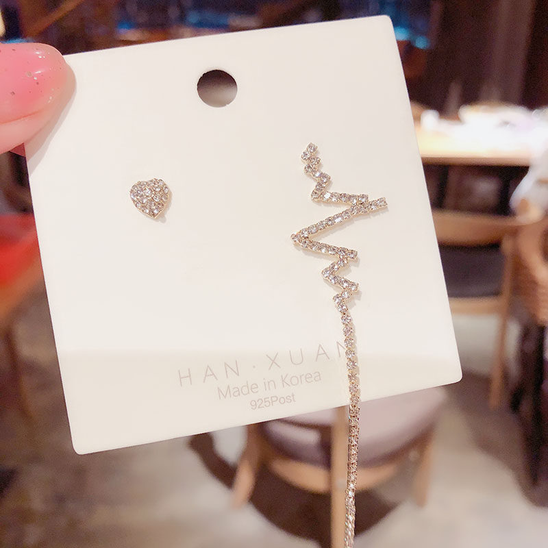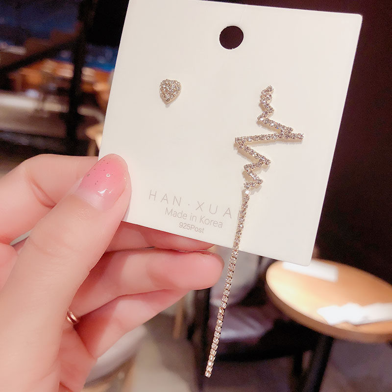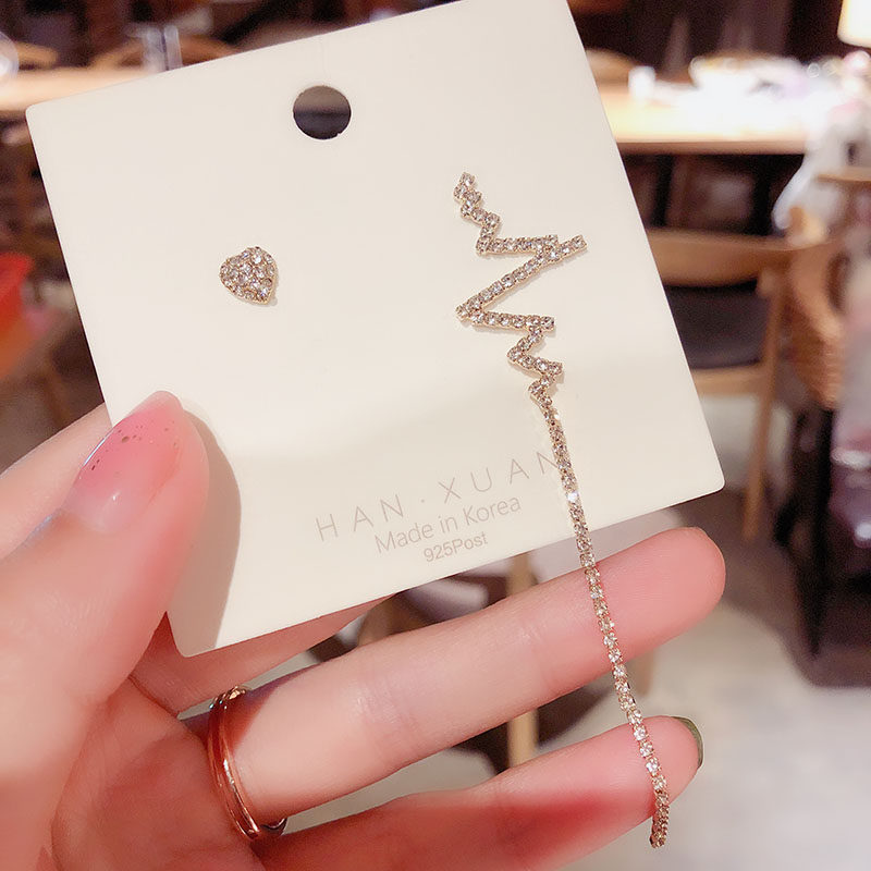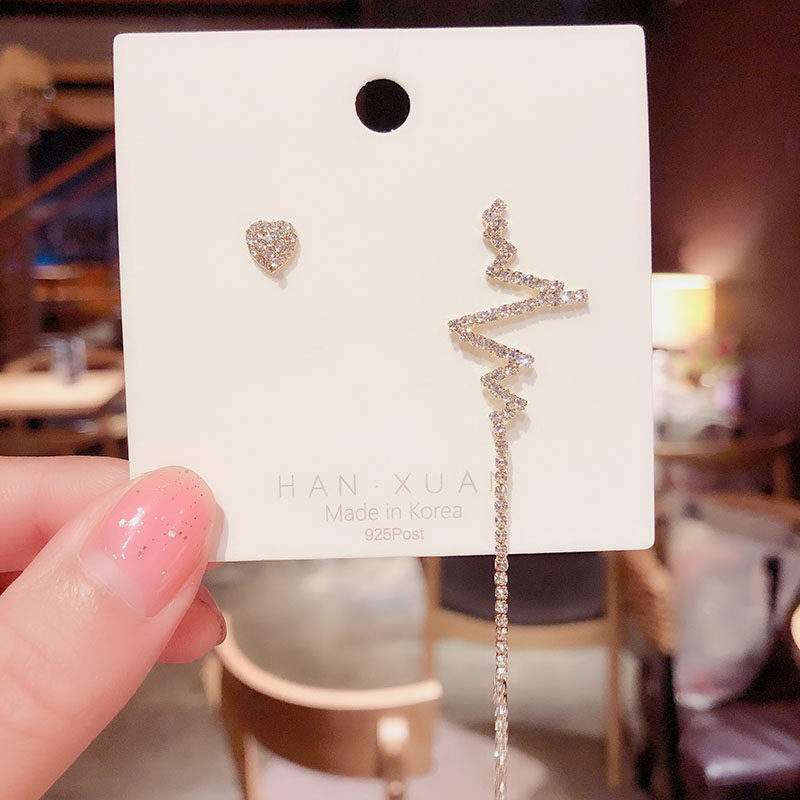 South Korea's Dongdaemun design feeling heartfelt tassel earrings long version asymmetric electrocardiogram silver needle ear acupuncture female