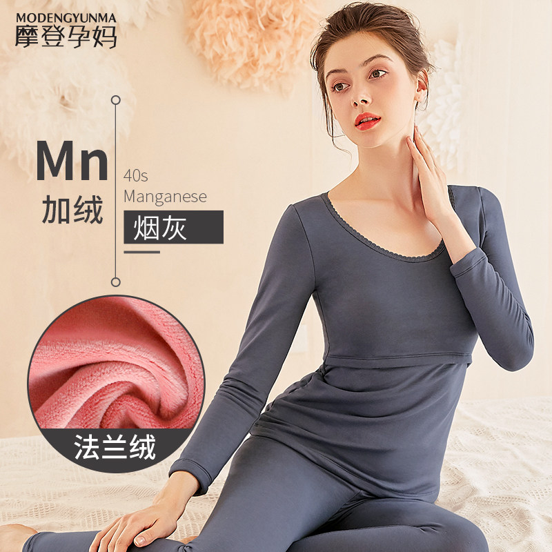 Pregnant women's autumn clothes sanitary pants plus velvet thick autumn and winter postpartum confinement clothes pajamas breastfeeding breastfeeding hot pants
