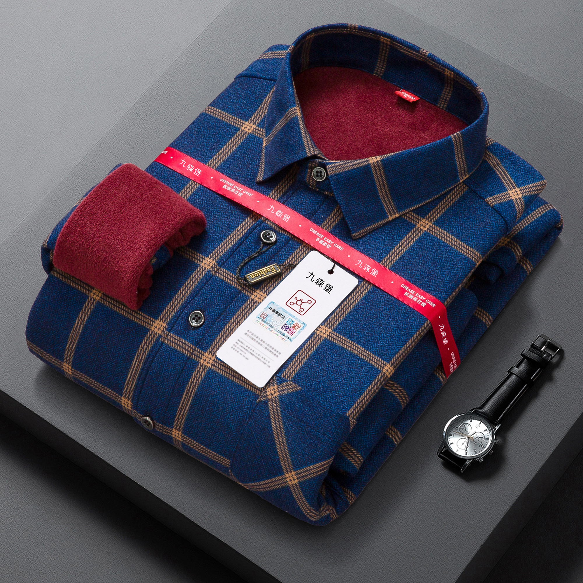 Large size thermal shirt men's thickened plus velvet plus fat to increase fat fat man loose long-sleeved large size 300 catties
