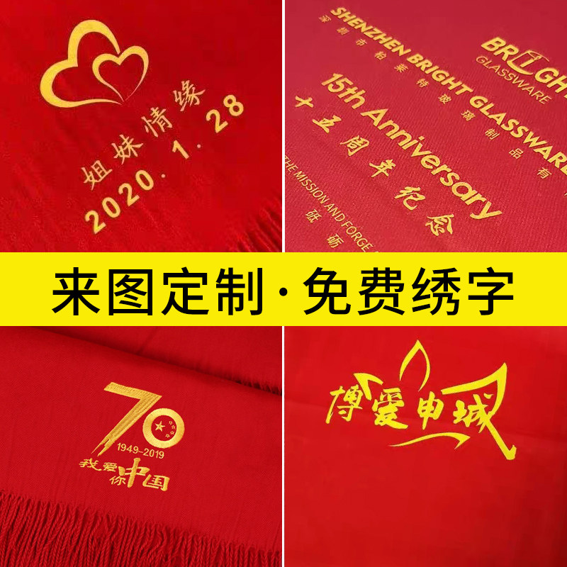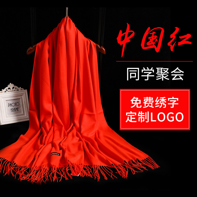Great red Chinese red scarf female life winter cashmere party annual meeting customized logo print embroidery activity
